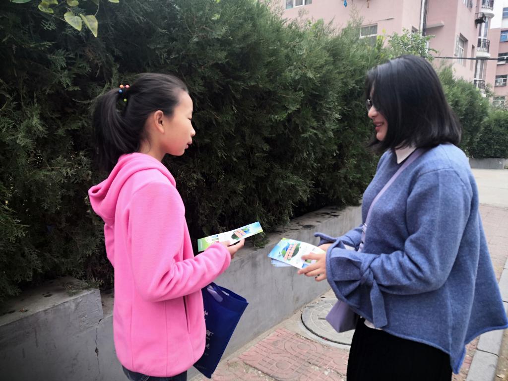 活动伊始,志愿者们分为九个小组,向小区居民派发“创建国家卫生城市、建设首府美丽家园”宣传单,并为其讲解垃圾分类的有关知识。