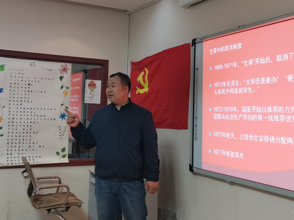 本次党课,白南定结合主题教育背景,以“习近平的七年知青岁月与梁家河‘大学问’”为主题,用“苦、学、做、情”四个字精简概括出习近平同志的七年知青岁月,并结合时代背景和历史文献介绍了习近平同志作为知青在梁家河村生活的艰苦:在插队时期的勤奋苦读、势必入党的决心:在担任梁家河村支书时,带领人民群众建大坝、挖水井、筑沼气池、发展蔬菜种植、修第一个男女分开的厕所等事迹以及帮助村民干农活,把人民群众当家人的情怀。同时讲述了梁家河的“大学问”的实质即为核心是实践的观念、要义是群众的观念、精髓是党的观念。他希望党员同志们积极学习习近平同志积极乐观、热爱学习、吃苦耐劳、奉献人民的优良品质。