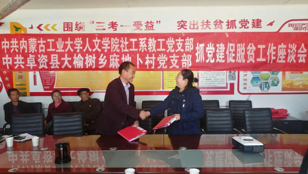 412日,yl6776永利集团党总支组织社会工作和法学两个教工党支部,赴永利官网帮扶点-卓资县大榆树乡麻地卜村进行教育扶贫实践系列活动。