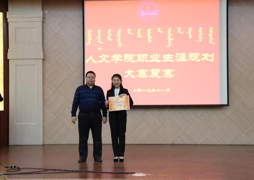 比赛开始,9位选手按照抽签的顺序依次上台结合PPT进行精彩演讲,分别从自我认知、职业认知、职业决策、学涯规划、调整反馈等五方面并结合自身实际情况认真作出规划书。进入现场答辩环节,选手们沉着应对,分析问题条理清晰,引经据典,赢得了现场观众的掌声。最后,评委们对选手们的表现进行了现场点评。最终法学18-1班白羽荣获一等奖,法学18-2班陈慧琴、法学18-3班玉峰获得二等奖,法学18-3格根图雅、社工18-1班李卉欣、法学18-1班燕雪娇获得三等奖,社工18-3班查娜、社工18-1班项薇、社工18-2班张晋获得优秀奖。
