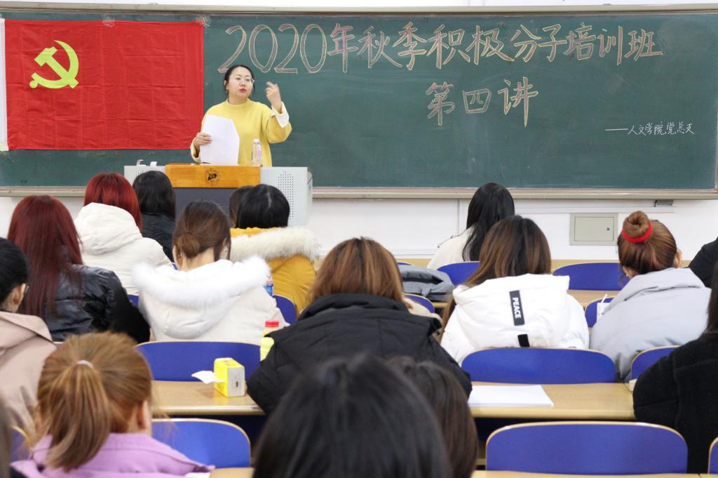 12月25日,yl6776永利集团在A辅201开展2020年秋季入党积极分子培训班第四讲,社会工作系教工党支部书记利爱娟主讲,入党积极分子共60余人参加。