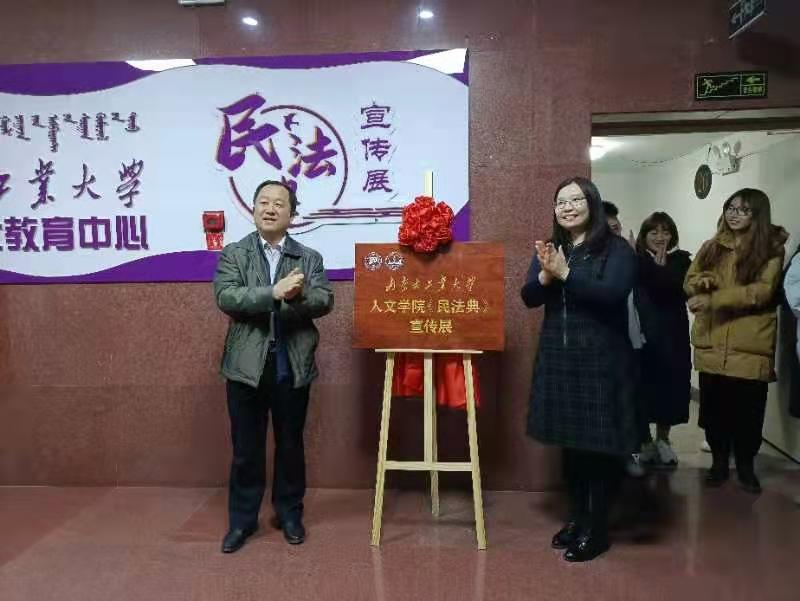 12月3日下午,学院《民法典》宣传展开展仪式在电力大楼26楼举行。校社科联秘书长、科技处副处长布和朝鲁与校宣传部副部长尚进为《民法典》宣传展揭牌,部分兄弟学院及yl6776永利集团部分老师和学生参加。院长文宗川向来宾介绍了《民法典》宣传展布展情况,全体来宾参观了《民法典》宣传展。