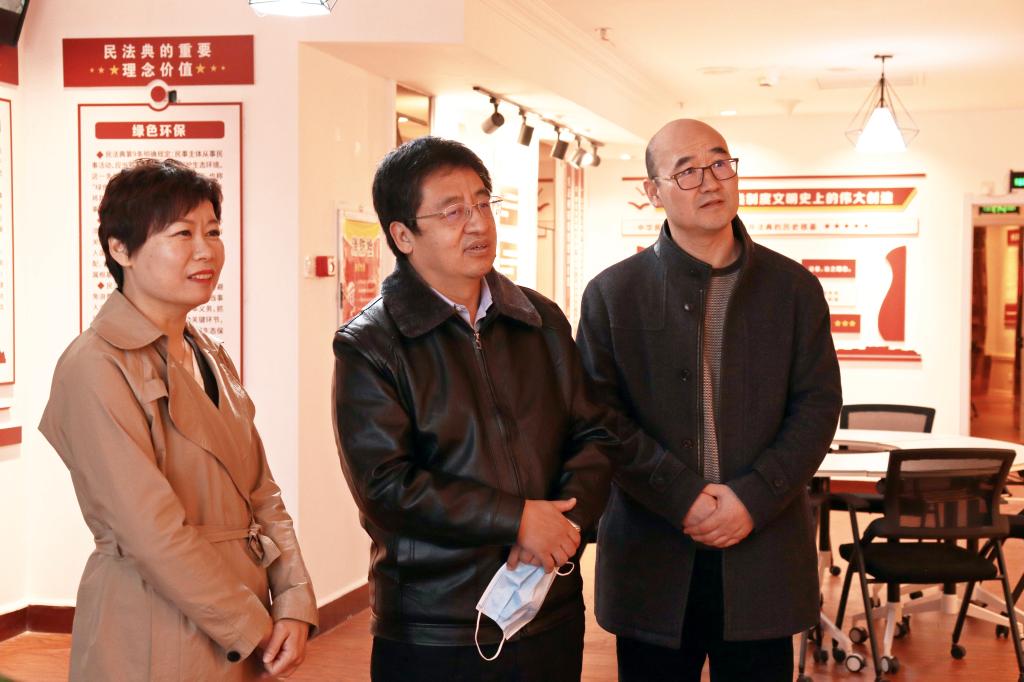 上午,许身健院长在学院书记马利强陪同下参观了我院的民法典展厅,并听取了教师们的介绍。许院长对此项工作予以高度肯定并结合自身经验对我院展厅布展等工作做了指导。