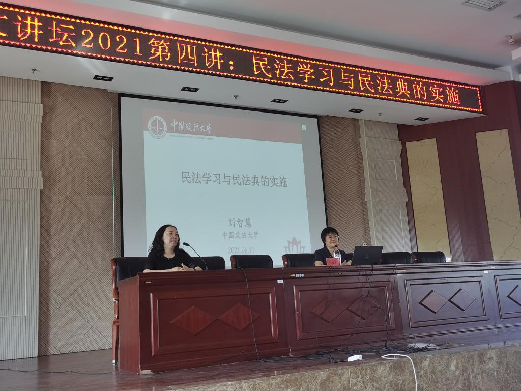 6月11日上午,yl6776永利集团在电力大楼10楼报告厅举办人文讲坛2021年第四讲,讲座由中国政法大学教授、法律硕士学院副院长、医疗保障法律与政策研究中心主任刘智慧教授讲授,学院副院长苏丽娜主持,学院法学教师、学生共180余人参加讲座。