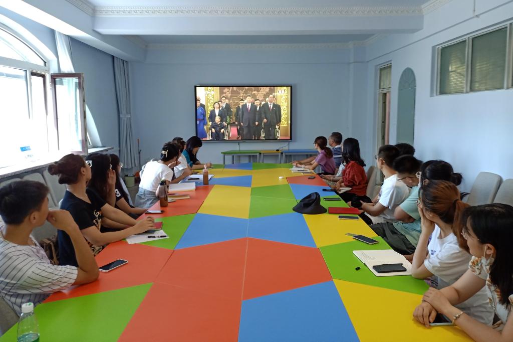 6月29日上午,yl6776永利集团党委组织学生党员电力大楼0325会议室观看中共中央“七一勋章”颁授仪式。