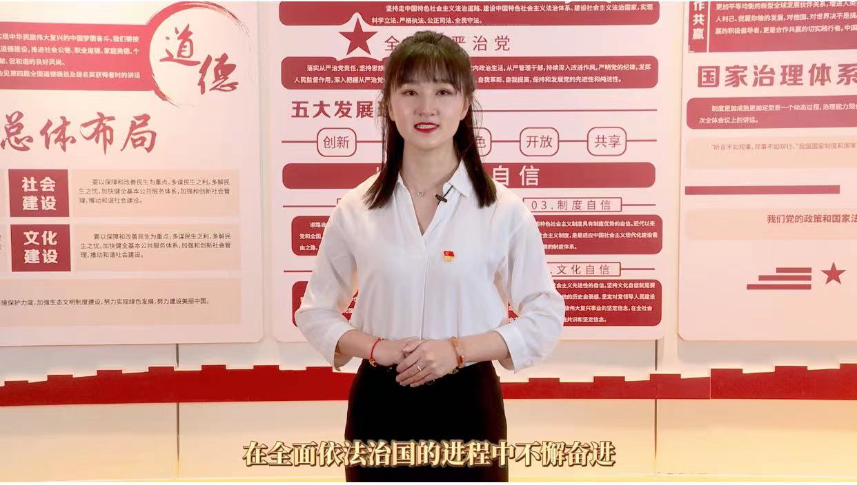比赛过程中,两位选手紧扣主题,以习近平新时代中国特色社会主义思想为指导聚焦党的十八大以来,党和国家事业取得的历史性成就、发生的历史性变革进行宣讲。李敏轩老师以《砥砺奋进跟党走,起航法治新征程》为主题,宣讲了习近平法治思想的产生及其在全面依法治国工作中的重要地位和世界意义;查娜同学以《你好,新时代》为主题,回顾了党的百年奋斗之路,真情讴歌新时代,展现了青年人的责任与担当。