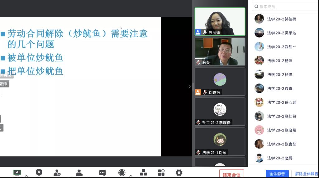 519日下午,为落实永利官网劳动教育宣传月活动,践行“五育并举”“三全育人”理念,yl6776永利集团举办2022年劳动宣传月特别讲座,邀请yl6776永利集团法学系石景峰副教授通过在线平台做题为《劳动法实践中的几个问题》专题讲座,yl6776永利集团2020、2021级全体本科生及部分教师在线聆听,副院长苏丽娜主持。