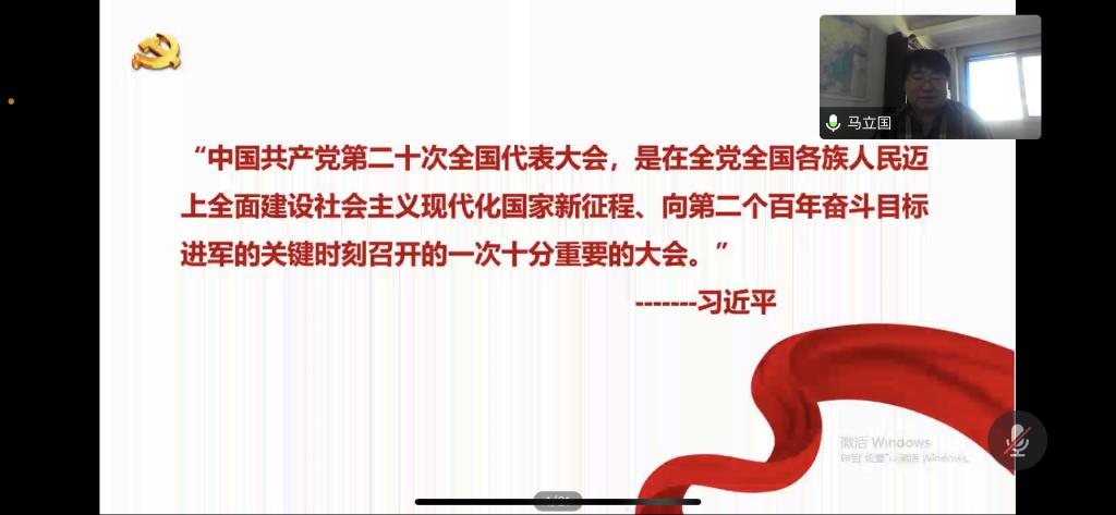 在专题宣讲中,马利强、郝晓艳、武新春、马立国分别从不同侧重点对党的二十大的重大意义、党的二十大报告中的详细内容、党的二十大对教育、科技和青年工作的重要论述以及如何从现实出发勇毅前行、履职尽责以推动党的二十大精神在学院落地生根等方面对党的二十大精神做了深入宣讲。