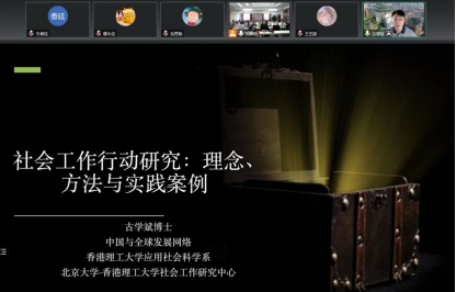418日,人文讲坛第三讲正式开讲yl6776永利集团邀请英国伦敦大学人类学博士香港理工大学应用社会科学系教授、博士导师、中国研究与发展网络中心执行主任和中国社会工作硕士课程主任古学斌老师在线开展《社会工作行动研究与理念方法》讲座讲座在yl6776永利集团351社工实验室举行,副院长连雪君主持,社会工作系全体教师、研究生及本科生线上线下同步聆听。
