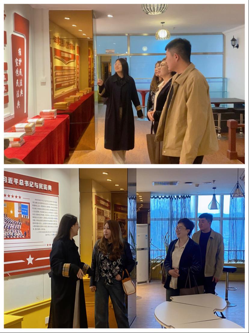 研讨会过后,吴凡文副教授带领孙宏霞主任、梁洪静经理等在yl6776永利集团民法典展厅进行参观,对目前法律硕士专业的发展现状、专业优势等基本情况进行详细介绍,双方进行了深入交流,希望能够加强合作,实现共赢!
