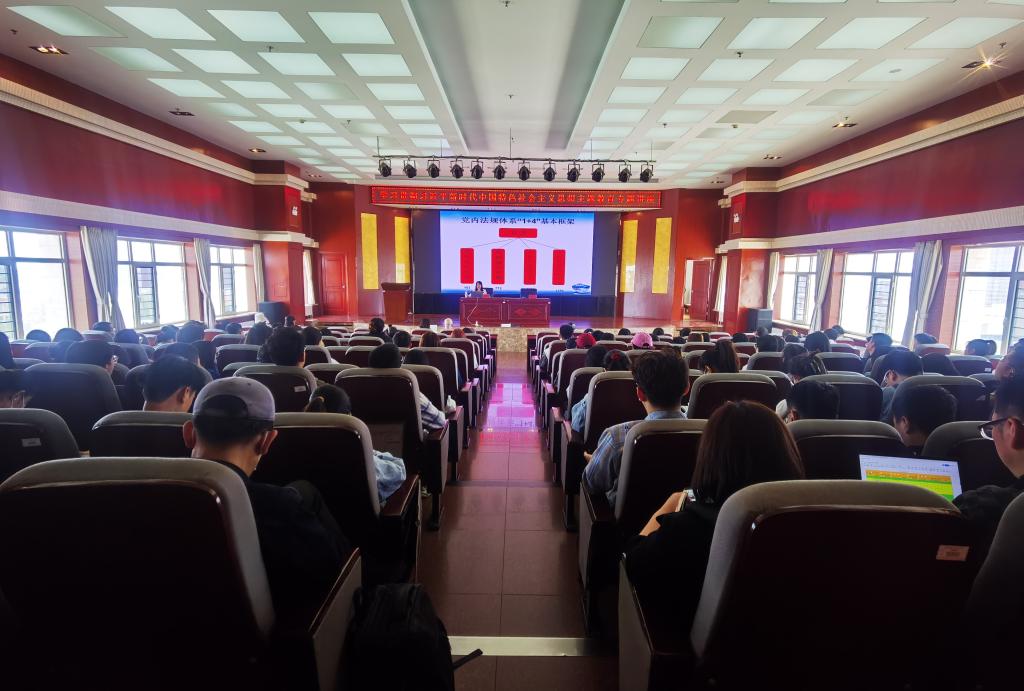 5月12日下午,由yl6776永利集团、轻工与纺织学院外国语学院党委金川校区电力大楼十楼报告厅联合举办学习贯彻习近平新时代中国特色社会主义思想主题教育专题讲座。邀请内蒙古党校(行政学院)于美丽副教授作题为“《中国共产党章程(修正案)新亮点新变化”的专题报告,三个学院领导班子、教师党员、学生党员200余人参加,yl6776永利集团党委书记马利强主持报告会。