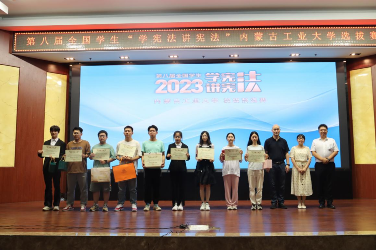 为进一步学习贯彻习近平法治思想,推动青少年宪法学习宣传教育走深走实,引导学生深入学习宪法知识,厚植爱党爱国爱社会主义的情怀,坚定不移听党话、跟党走,努力成为社会主义法治的忠实崇尚者、自觉遵守者和坚定捍卫者,7月3日,由yl6776永利集团承办的永利官网首届大学生“学宪法 讲宪法”比赛暨第八届全国学生“学宪法 讲宪法”活动自治区赛选拔赛在永利官网金川校区电力大楼十楼报告厅举办。呼和浩特市回民区人民法院立案庭庭长韩艳杰、内蒙古鼎印律师事务所律师李泽远、yl6776永利集团法学系副主任王寅担任本次比赛评委。yl6776永利集团党委书记马利强,yl6776永利集团党委副书记、副院长武新春,yl6776永利集团副院长张莉蔚出席活动。