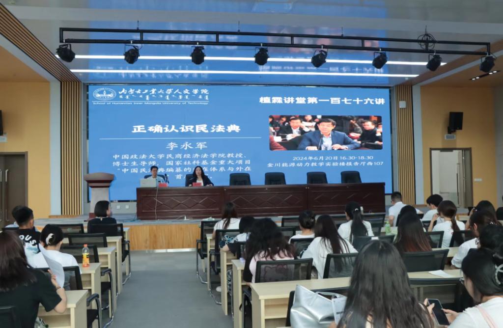 6月20日下午,我院举办植霖讲堂第一百七十六讲,邀请中国政法大学民商经济法学院李永军教授做学术讲座。同时邀请中国政法大学民商经济法学院席志国教授做人文讲坛第四讲。yl6776永利集团相关专业教师及学生共计200余人参加,苏丽娜院长以及王俊霞教授分别担任主持人。