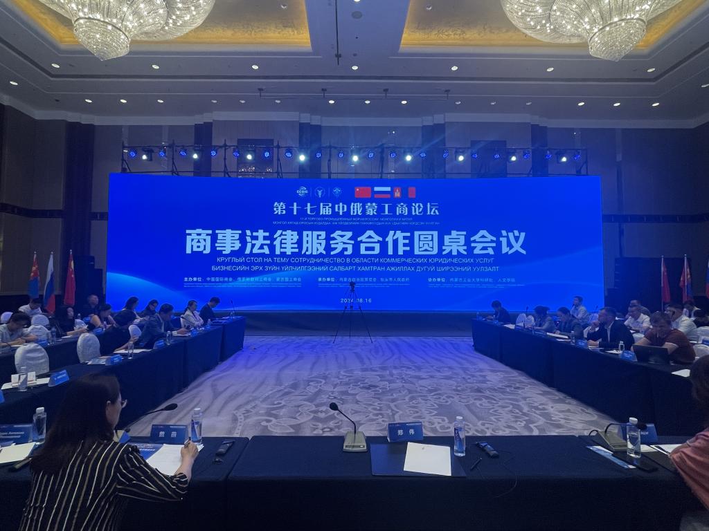 8月16日,由中国国际商会、俄罗斯联邦工商会、蒙古国工商会联合主办的第十七届中俄蒙工商论坛隆重开幕,我院协办分论坛“商事法律服务合作圆桌会议”。会议由yl6776永利集团院长苏丽娜主持,中国贸促会法律部部长郑伟、内蒙古自治区司法厅副厅长戴燕、蒙古国工商会国际仲裁院院长恩和策策格、中国人民大学律师学院院长刘瑞起、蒙古国国家注册总局法人注册局局长阿尤喜、中国国际经济贸易仲裁委员会仲裁院副院长解常晴、中国海事仲裁委员会东北亚国际仲裁中心副秘书长洪慧敏等出席会议并致辞,60余名中俄蒙工商界、法律界的相关专家学者、机构代表、知名律师、企业法律顾问、高等院校法律专业代表参加会议,围绕中俄蒙地区高水平商事法律服务建设,坦诚对话、分享经验、交流互鉴、凝聚共识。