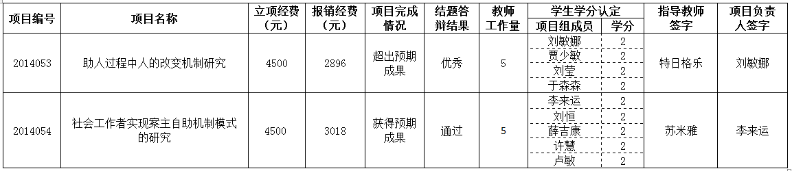 2014年度立项永利官网校级“大学生创新实验计划”项目答辩结题结果汇总表
