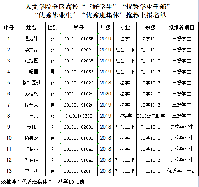 yl6776永利集团全区高校“三好学生”“优秀学生干部”“优秀毕业生”和“优秀班集体”审核初选结果公示