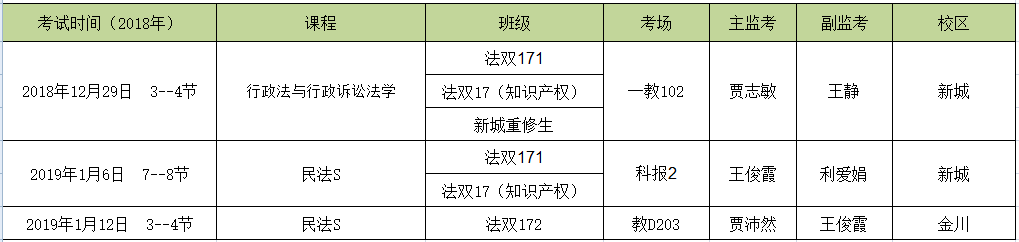 2018-2019学年第一学期法学双学位考试安排(二)