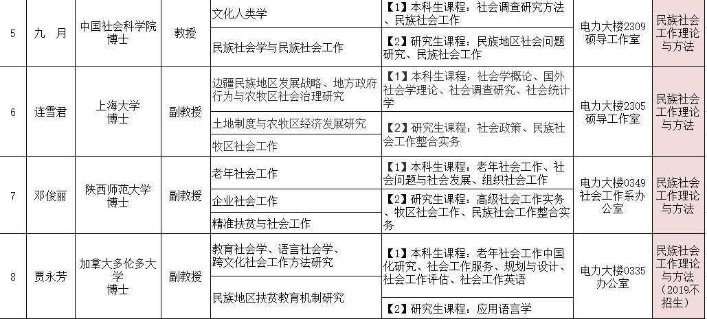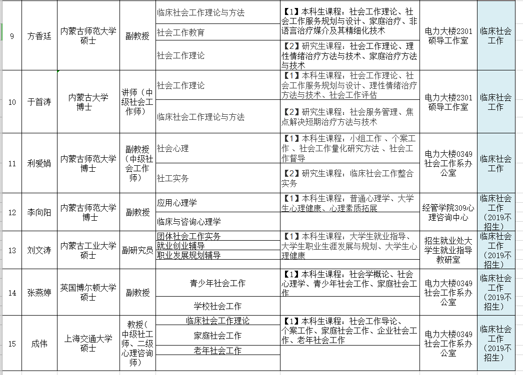 yl6776永利集团社会工作硕士研究生导师情况一览表(2019年)