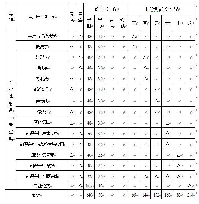 六、本教学计划适用于法学(知识产权方向)双学士学位学生,并依托内蒙古科技计划项目——“知识产权中介机构建设与人才培育工程”。
