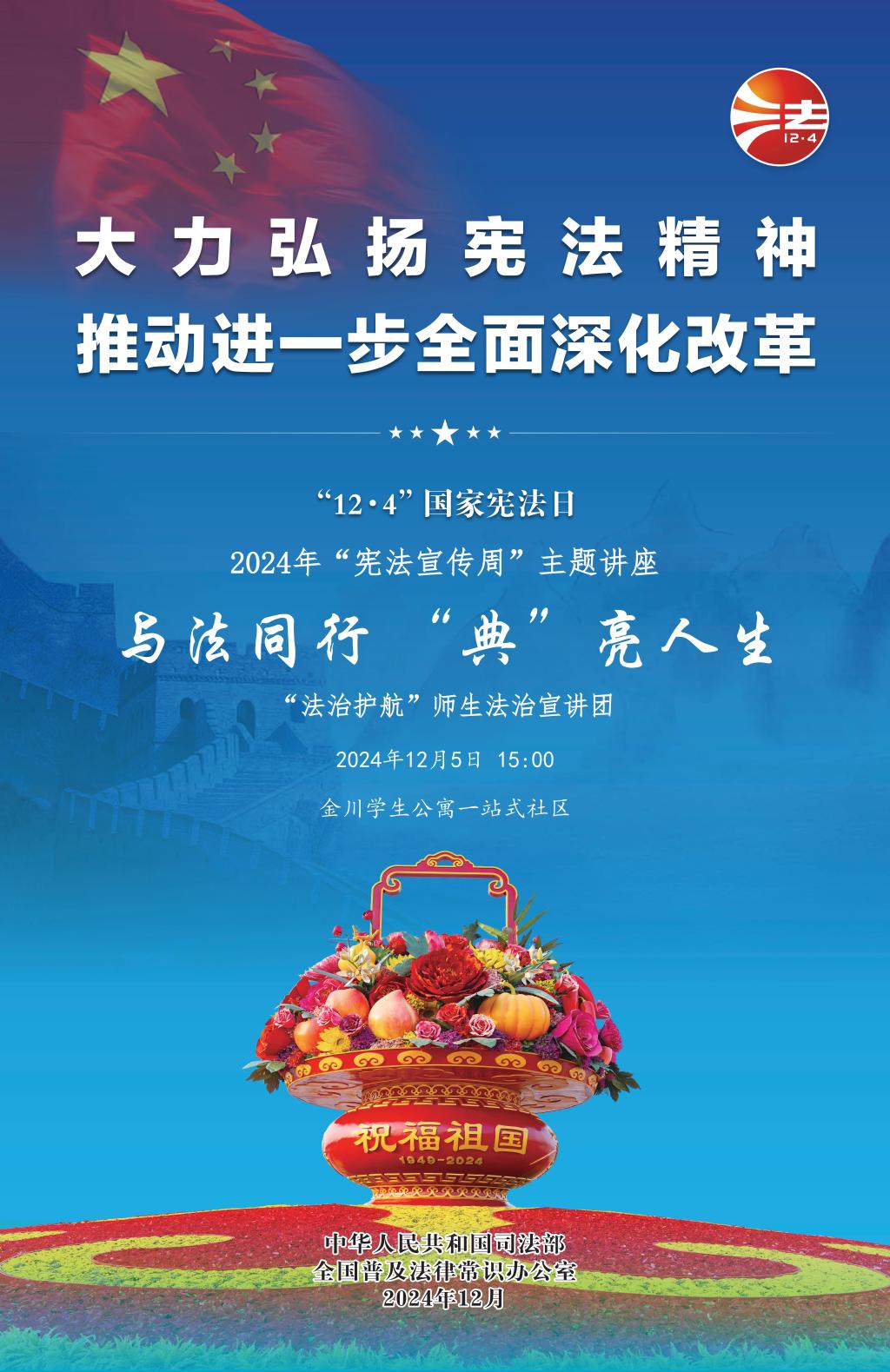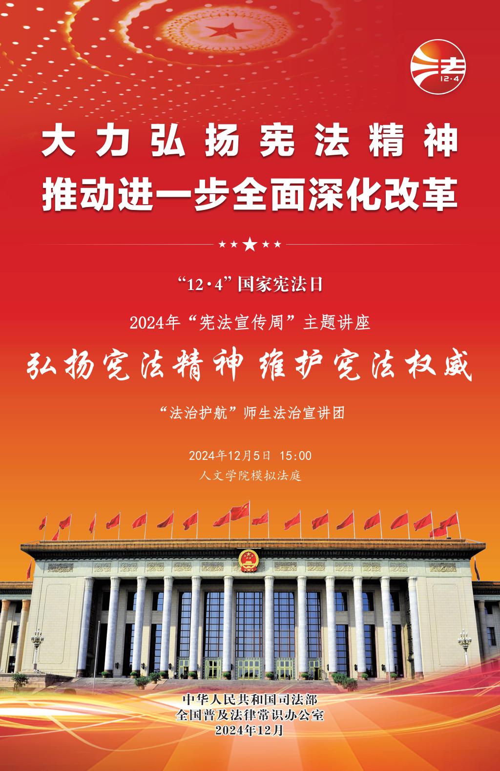 2024年12月4日是第十一个国家宪法日,为深入贯彻党的二十届三中全会精神,加强宪法学习宣传,yl6776永利集团“法治护航”师生法治宣讲团定于2024年12月4日开展“宪法宣传周”系列讲座,旨在掀起全校师生学习宣传宪法热潮,努力使尊法学法守法用法在我校蔚然成风。