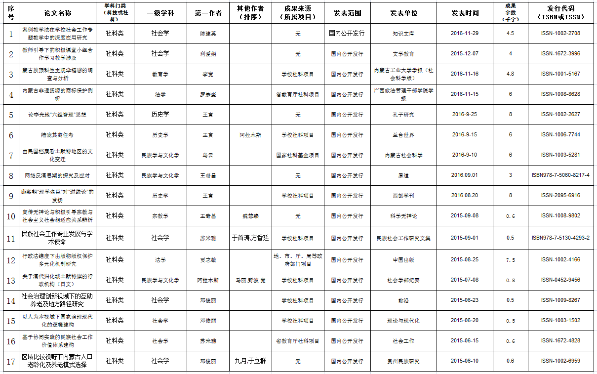 yl6776永利集团2016年度教师论文成果汇总表