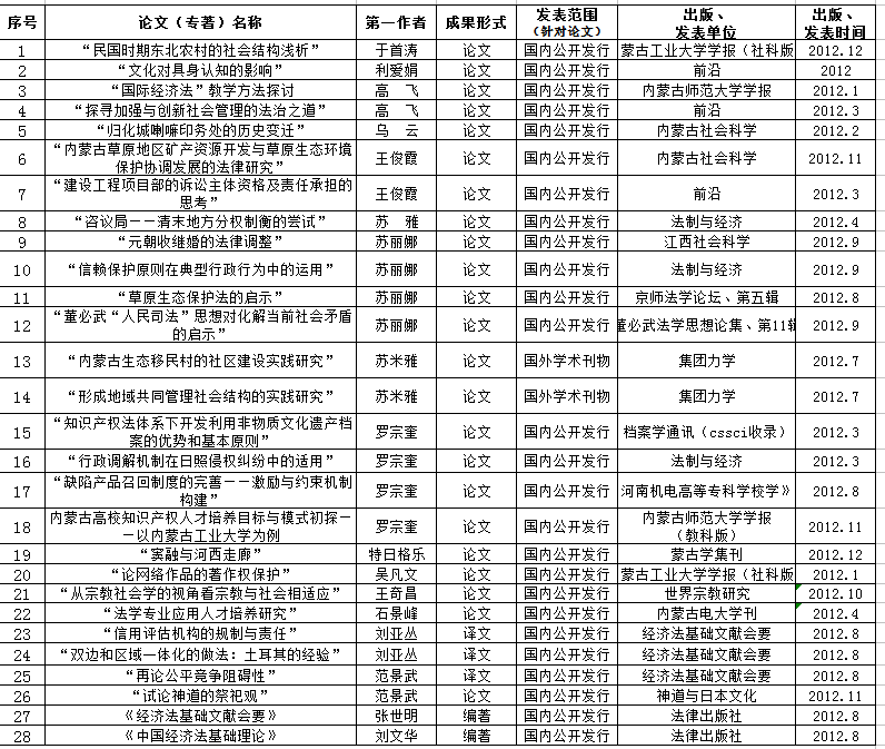 yl6776永利集团2012年度教师论文成果统计