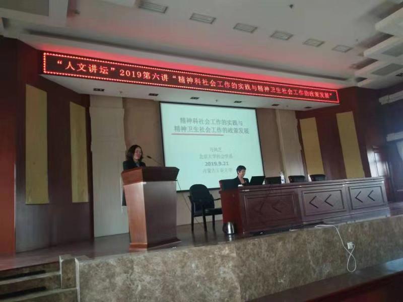921日,yl6776永利集团在电力大楼十楼报告厅举办“人文讲坛”2019年第六讲——精神科社会工作的实践与精神卫生社会工作的政策发展,北京大学社会学系马凤芝教授主讲,学院全体学生及教师代表200余人聆听讲座,副院长苏丽娜主持。