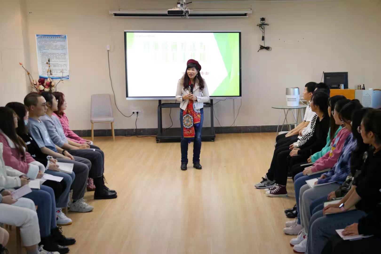 11月12日下午,yl6776永利集团举办人文讲坛第四讲于电力大楼社工实验室举行,叙事绘画治疗法创始人黄晓红教授主讲。社工系主任邓俊丽及社会工作系教职工、2020级MSW学生及部分本科生参加。