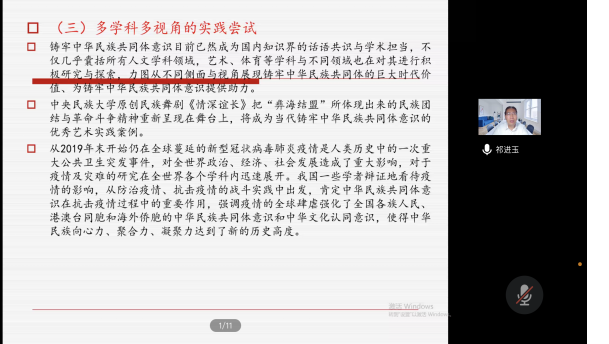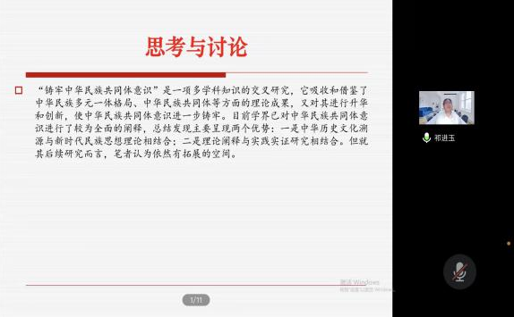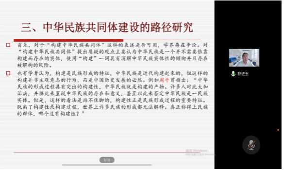 祁进玉教授按照时间线索将中华民族共同体意识的发展脉络做了清晰呈现,从学理性和实践性视角阐明铸牢中华民族共同体意识的意义,还结合民族地区具体实践案例、学校为实践主体的、多学科多视角的案例为我们呈现了如何具体去践行铸牢中华民族共同体意识,最后通过思考与讨论为老师和同学今后的学习和研究工作指明了方向。讲座内容丰富,观点新颖,启发性强。