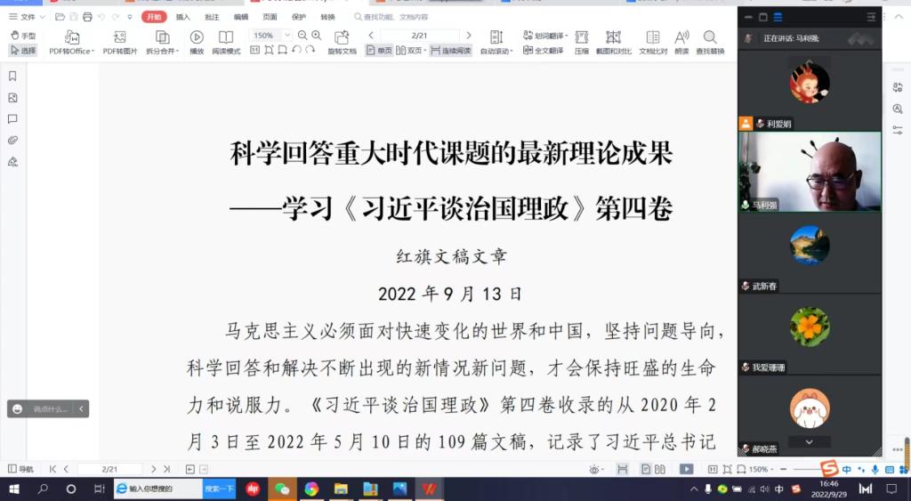 9月29日下午,yl6776永利集团党委理论学习中心组通过腾讯会议举行2022年第8次集体学习。院党委书记马利强主持。