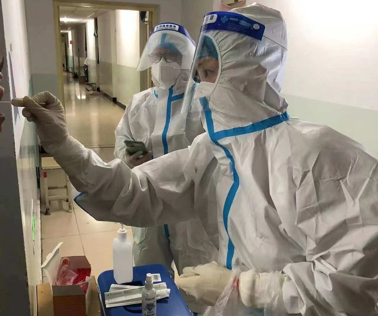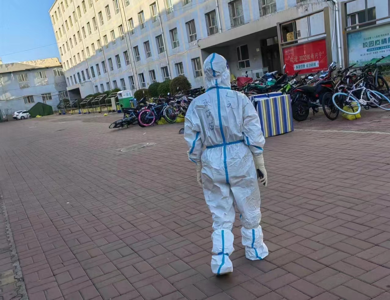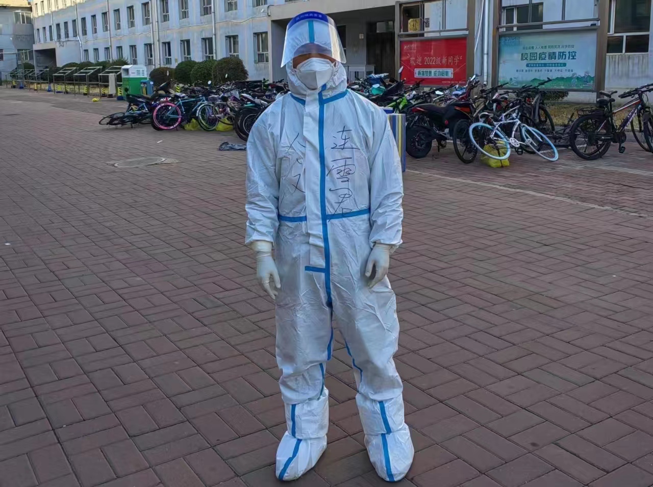 自本轮疫情发生以来,人文学院党委第一时间谋划研判,迅速启动指挥有序、执行有效、监督有力的综合防控措施。学院党委书记马利强,院长、副书记郝晓燕,副院长、副书记武新春带领学工和班主任教师党员在第一时间进驻校园为学生服务。从带着口罩每天清晨5点的核酸检测、晚上宿舍的值守值班,到身着全身防护服清晨到夜半从1楼到6楼的一次次送餐和送水,不分昼夜连续工作的17天里的每一滴汗水都在实实在在地书写着“疫情就是命令,防控就是责任”的共产党员的使命担当。伴随第二批人员的进校审批通过,学院领导班子5人全体会师在抗“疫”最前方。这样的精神感召下,学院青年教师党员踊跃报名、冲锋在前,分批次的投入到一线的防疫工作中。最新入校的教师党员们在副院长连雪君、张莉蔚的带领下,主动承担高风险楼层和工作量最重的楼层的检测任务,经常性的身着防护服不吃不喝的连续工作8小时以上。