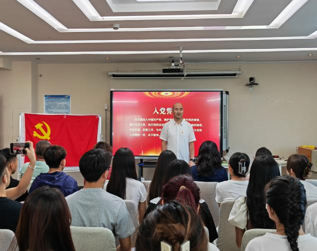 7月1日,学院党委开展新发展党员入党宣誓仪式老党员重温入党誓词活动,老党员为新党员佩戴党员徽章,切实加强对党员的党性教育,增强师生党员的政治责任感和历史使命感。学院党委书记马利强讲话,激励广大党员以更加饱满的热情,立足本职、谋划工作、解放思想、晋位升级,将党建优势转化为学习、工作优势,以实际行动迎接中国共产党成立103周年。