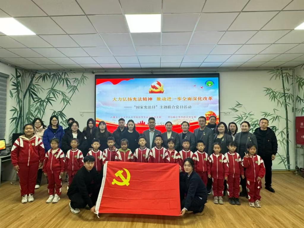 12月4日是第十一个国家宪法日,为深入贯彻党的二十届三中全会精神,加强宪法学习宣传,落实“大力弘扬宪法精神,推动进一步全面深化改革”宪法宣传周主题,yl6776永利集团法学专业学生党支部党员赴呼和浩特市回民区贝尔路小学与贝尔路小学西校区党支部开展主题联合党日活动。