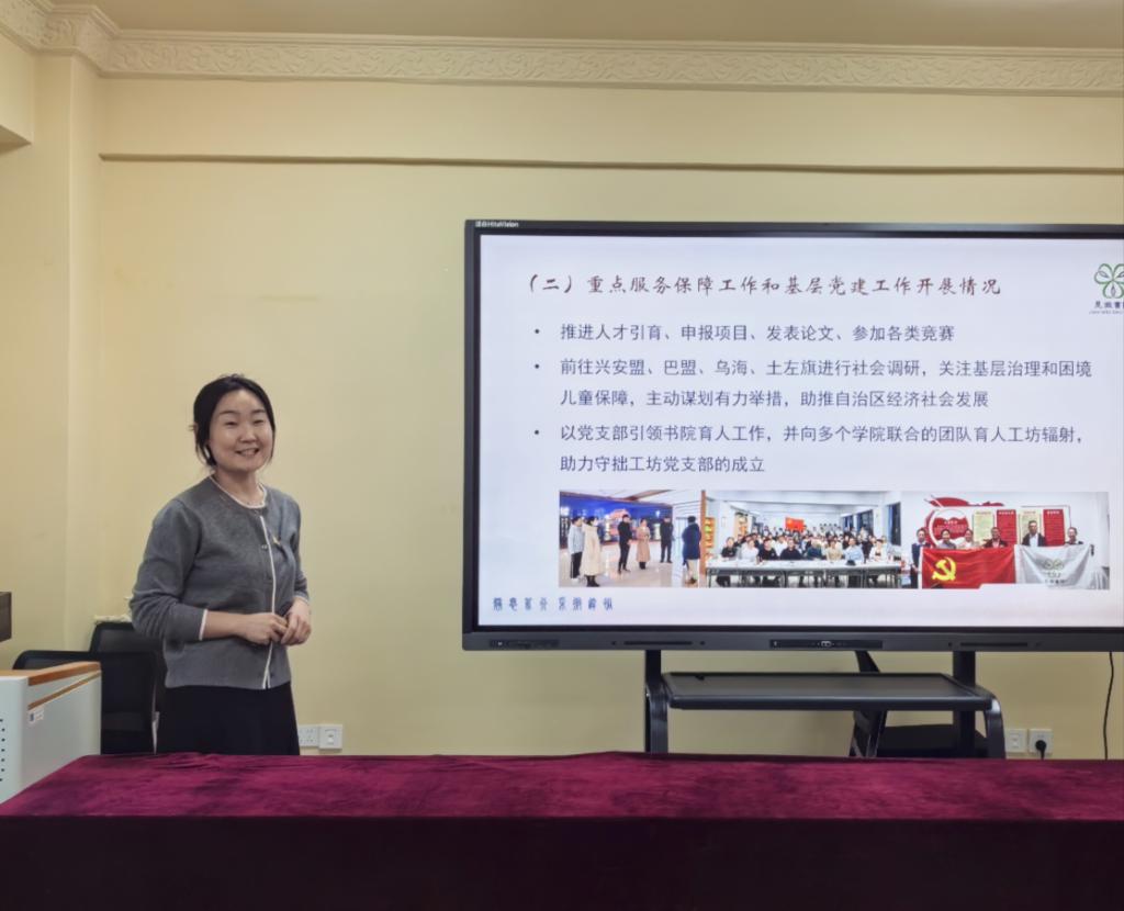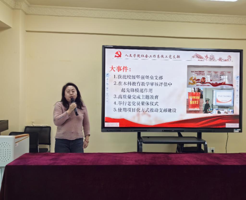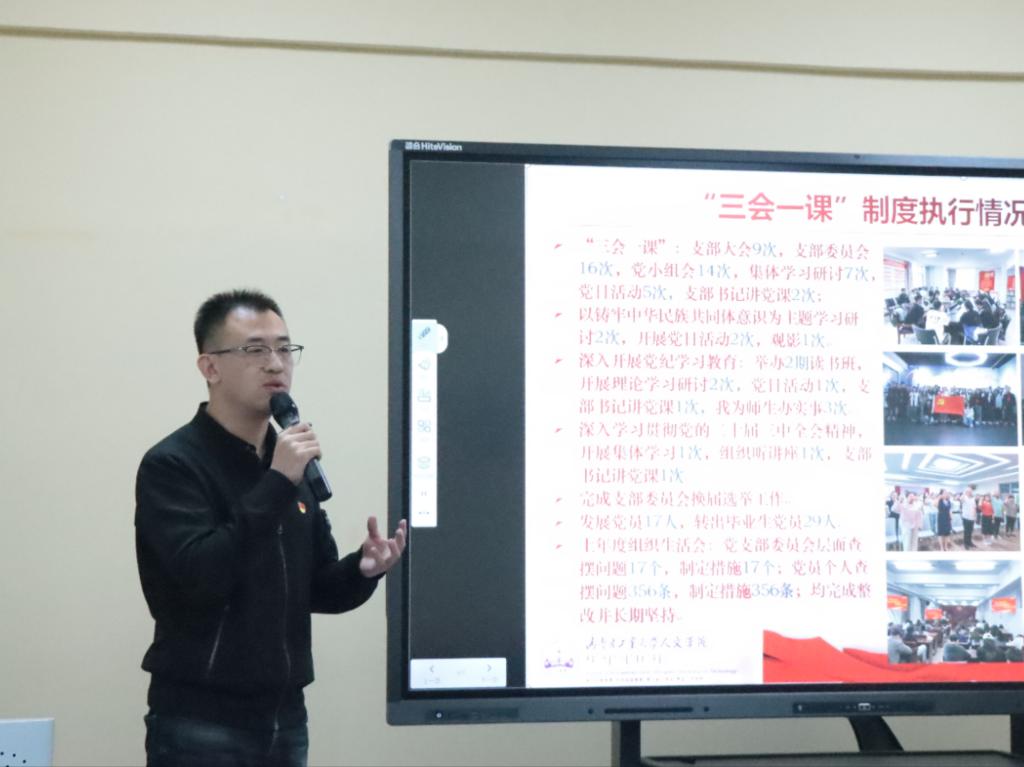 述职大会上法学系教工党支部书记李敏轩、社会工作系教工党支部书记利爱娟、法学专业学生党支部书记孔德豪、社会工作专业学生党支部书记吴霈龙、研究生党支部书记李慧英、见微书院党支部书记廉婷婷围绕本年度党支部党建工作成效、“三会一课”执行情况、党支部品牌建设、存在的问题及下一步计划等方面采用PPT汇报形式依次述职,马利强采取“一述一评”的方式进行点评,分别指出各党支部工作存在的问题并指明努力方向。述职后,参会人员进行民主评议。