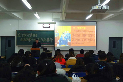 为宣传贯彻自治区第十次党代会精神,yl6776永利集团团总支学生会于1220日在A101召开了学习宣传贯彻自治区第十次党代会精神会议。yl6776永利集团党总支副书记、副院长毛长明、团总支书记白南定及学生党员、学生干部代表出席会议,100余名同学参加会议。