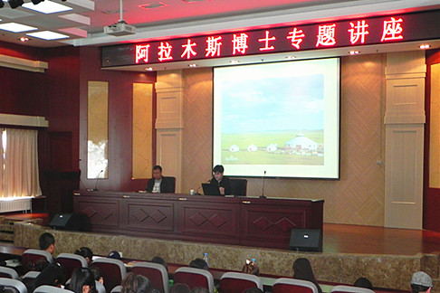 5月8日下午,yl6776永利集团在金川校区十楼报告厅举办“人文讲坛”第四讲。学院阿拉木斯老师作了题为“内蒙古历史演变—以呼和浩特地区土地制度变迁为例”讲座。金川校区200余名同学聆听了讲座。阿拉木斯老师通过图文并茂等方式从阿拉坦汗时期安置大量内地农民开发土默特川建立呼和浩特讲起,通过明朝、清朝、民国等时期的土地制度演变和满、蒙、汉等民族的不断融合,创造了今天独具特色的内蒙古文化和各民族繁荣团结的景象。阿拉木斯老师严谨治学的态度和详实的资料收集给在场同学留下深刻印象。通过本次讲座,使广大学生对自治区区情有了更深入的了解,进一步明确要高举各民族大团结的旗帜,坚持各民族平等团结互助和谐,共同创造美好生活。(供稿:yl6776永利集团 白南定 摄影:纪林 )