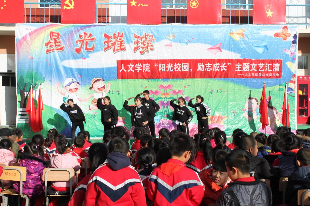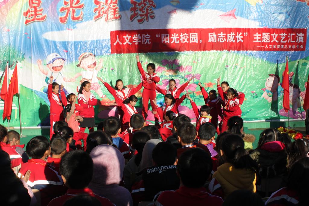 为纪念我校在刀刀板小学支教10年,yl6776永利集团志愿者11月15日在刀刀板小学举了以“阳光校园,励志成长”为主题的文艺汇演,刀刀板小学师生及yl6776永利集团学生组织参加。