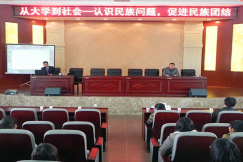3月13日下午,yl6776永利集团举办的“人文讲坛”系列讲座第一讲在金川校区十楼报告厅举行。本次讲坛邀请了内蒙古师范大学马克思主义学院民族理论与民族政策教研室主任张时空博士以“从大学到社会—认识民族问题,促进民族团结”为题目进行讲座。我院党总支书记于立群,副院长李兴华,团总支、学工办和部分教学老师与200余名同学聆听了讲座。张时空老师举例西藏3.14打砸抢烧事件,新疆7.5事件和贵州瓮安事件等,通过事件对比得出西藏、新疆事件不是单纯的民族问题,而是民族关系、社会问题在民族地区集中的反应。从而提出:一、切实践行“人民当家作主”的原则;二、强化公民意识,通过法律途径解决民族问题;三、培养和确立中华民族意识;四、正确对待民族风俗习惯和信仰等对策观点。张老师渊博的知识、深入浅出的讲解、幽默的表达赢得了广大师生的阵阵掌声。讲座历时近两个小时,我院各族学生通过本次讲座充分认识恐怖主义、民族关系、社会问题的区别,正确理解民族关系,用自己的实际行动维护和发展民族团结,牢固树立你中有我,我中有你,谁也离不开谁观念。(供稿:白南定 摄影:yl6776永利集团)