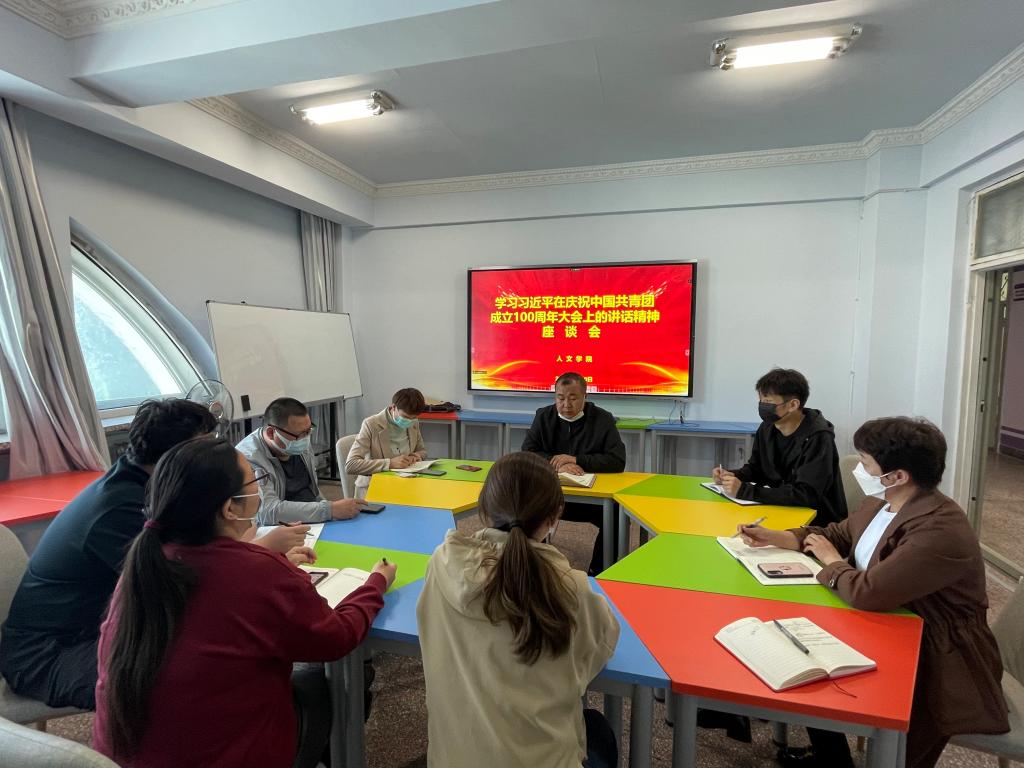 下午14时30分,我院团委在0325会议室召开了学习习近平总书记在中国共产主义青年团成立100周年大会上的讲话精神座谈会,学院副书记、副院长白南定主持,学院全体班主任、辅导员、学生干部和部分教师代表参加。