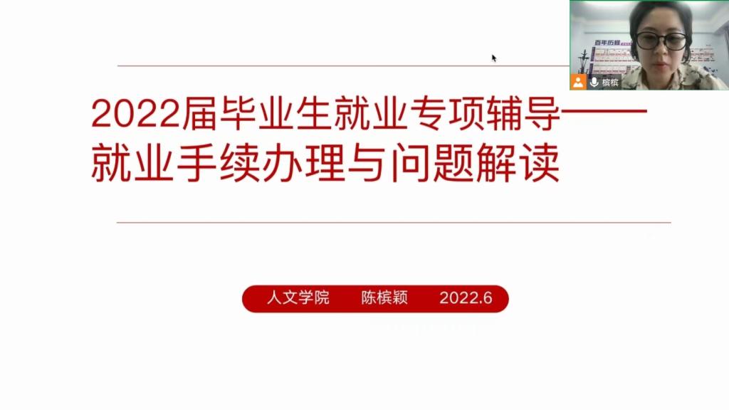 6月22日下午,我院线上举办2022届毕业生就业专项辅导——就业手续办理与毕业生就业问题解读的讲座。我院就业指导老师陈槟颖主讲,2022届部分毕业生参加。