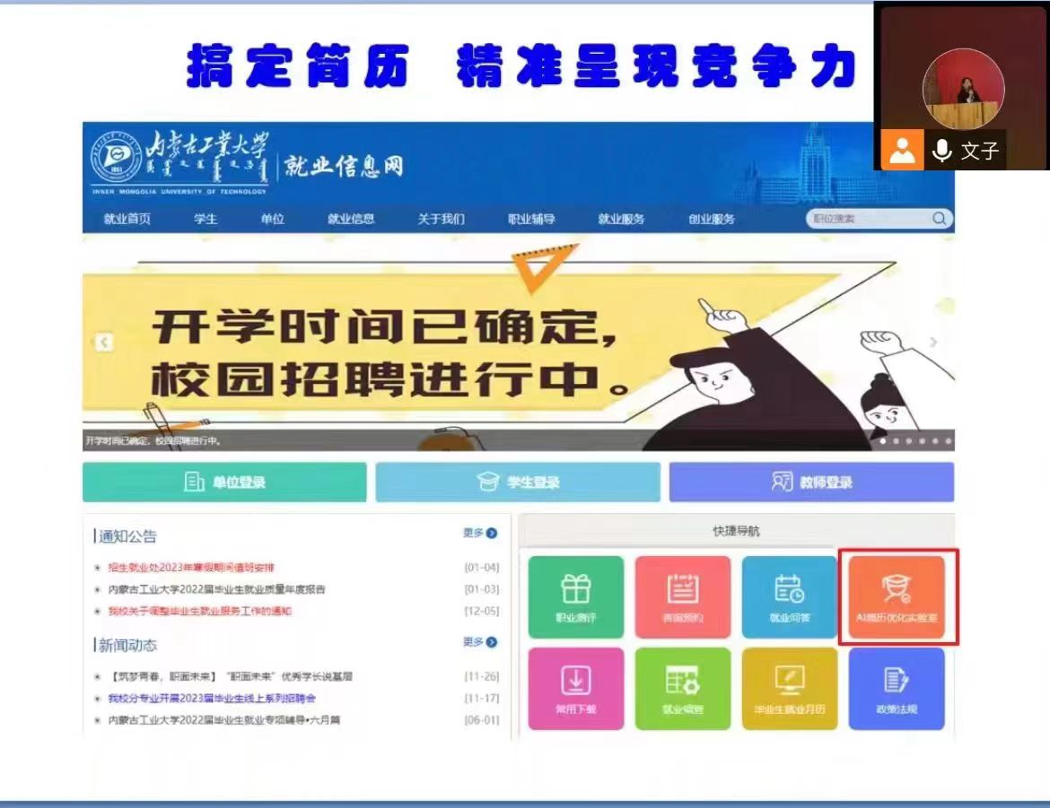 讲座大学生就业形势分析、锁定就业目标求职技巧搞定工作小贴士三部分内容进行。刘文涛首先对大学生就业背景及考研考公等不同形式就业进行了全面分析,为同学们的就业选择提供了宝贵建议随后结合自身毕业求职经历以及接触过的学生案例,针对大学生就业压力大、签约解约等常见问题,为毕业生们排疑解难。最后分享了简历修改、简历投递的小贴士,以及AI面试、结构化面试等常见面试的实用技巧。