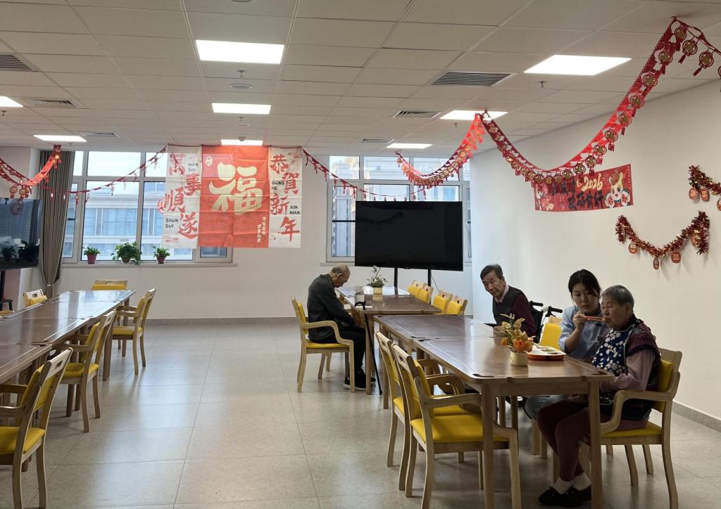 3月12日下午,来到了呼和浩特市中医蒙医医院医养中心,作为自治区首家设立在三甲医院内部的医养结合机构,该中心集医疗护理、康复保健、生活照料、文化娱乐于一体,真正实现了“医”与“养”的无缝对接,有效破解了传统养老机构“养老不治病、治病不养老”的难题 。走进医养中心,温馨的居住环境、科学的适老化设计(防滑地板、紧急呼叫系统、睡眠监测设备等)以及营养均衡的食谱,让我院师生一行深切感受到了高品质医养服务的温度 。当看到学校师生们的到来,医养中心的老人们脸上洋溢出开心的笑容,场面温馨感人。负责接待并全程讲解的是我院2008级社会工作专业的一名优秀校友。目前,他是该中心的业务骨干,在带领师生参观老人们的“新家”和活动区域时,详细介绍了社会工作专业在老年人精神慰藉、社会支持网络构建、临终关怀等领域的重要作用。他表示,医养中心的工作内容与社会工作专业高度契合,目前中心对专业社工人才需求迫切,非常欢迎我院学弟学妹来这里施展才华,并承诺后续将回学院进一步商讨具体的合作细节。随行的毕业生们通过实地感受,也看到了未来银发经济浪潮下,社工专业发展的无限可能。