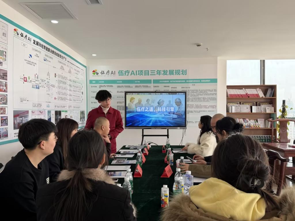 3月12日下午,学院师生一行来到内蒙古伍疗健康科技有限公司。据调研了解,该公司成立于2019年,是一家集中医养生保健、健康管理、人工智能健康应用及医学研究于一体的创新型健康科技企业,致力于通过智能化手段推动大健康产业发展 。在企业负责人的引导下,师生们观看了企业宣传片,并重点参观了其自主研发的社区SaaS云平台。该平台通过大数据和人工智能技术,实现了对居民健康数据的动态管理和个性化服务,给师生们留下了深刻印象。座谈会上,双方就健康服务与管理、康养人才培养等话题展开深入交流。期间,在该公司实习的两名来自其他高校的实习生,与我院毕业生就实习内容、岗位适配度等进行了互动交流。企业方表示,随着业务版图的扩张,对具备医学背景和现代管理知识的复合型人才需求旺盛,非常欢迎我院相关专业学生前来实习就业。