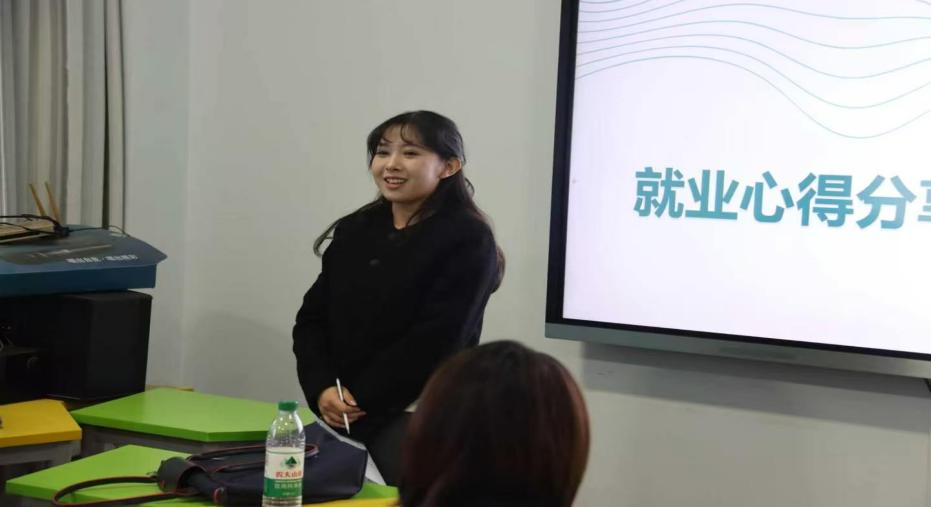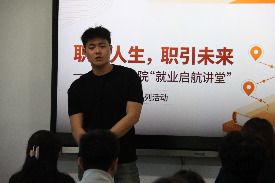 最后,已就业毕业生李童、张一分别结合自身求职经历,从岗位信息获取、简历制作优化到面试技巧提升,为同学们分享了实用干货,建议大家把握校招机会、突出自身优势,高效备战求职季。