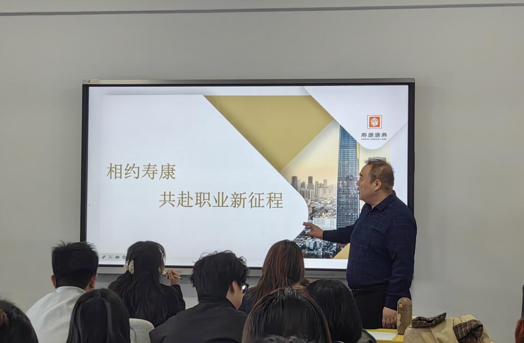 靖鹏耀首先结合养老行业发展现状,为同学们解读了银发经济背景下的行业机遇,介绍了寿康养老的业务布局与2026年管培生培养计划,展现了养老产业对社工专业人才的广阔需求。随后瑞众保险经理田晓梅围绕瑞众保险内蒙古分公司的招聘岗位、薪资福利与发展路径展开宣讲,让同学们打破了对保险行业客户服务等岗位的一些固有认知,对金融类保险行业有了新的认识。
