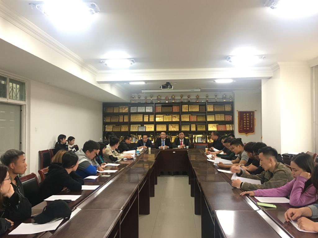 419日下午,蒙古国科技大学高等商学院院长巴图图布新,副院长班则日格其一行前来我院做研究生招生宣传,我校国际交流学院李燕江老师陪同。yl6776永利集团团学办公室负责人齐永富老师与50余名民族班同学参加会议,党总支副书记、副院长白南定主持。