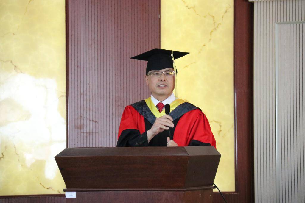 最后,文宗川院长致辞,向付出辛勤劳动的老师们表示诚挚的感谢并向同学们表示由衷的祝贺。他围绕仪式感、自律和格局展开讲话。首先提到仪式感是中华民族文化自信所在,同学们要学会承认和尊重仪式感,成为一个有自信力的人;接着借用罗斯福的话“有了自律能力,没有什么是做不到的”,鼓励同学们要想实现梦想,就必须学会自律;最后希望同学们成为一个有格局的人,做事情,有担当;遇挫折,能坦然;对问题,有看法。