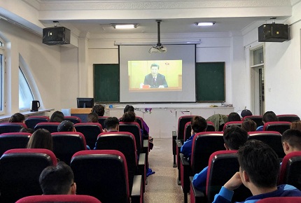 430日上午,yl6776永利集团于电力大楼0314组织学生通过网络直播观看纪念五四运动100周年大会。yl6776永利集团团总支负责人陈槟颖,学生代表60余人参加。