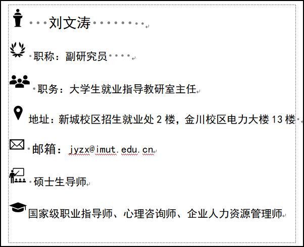 2011.01 -- 2014.11 永利官网招就处就业咨询指导办公室 主任